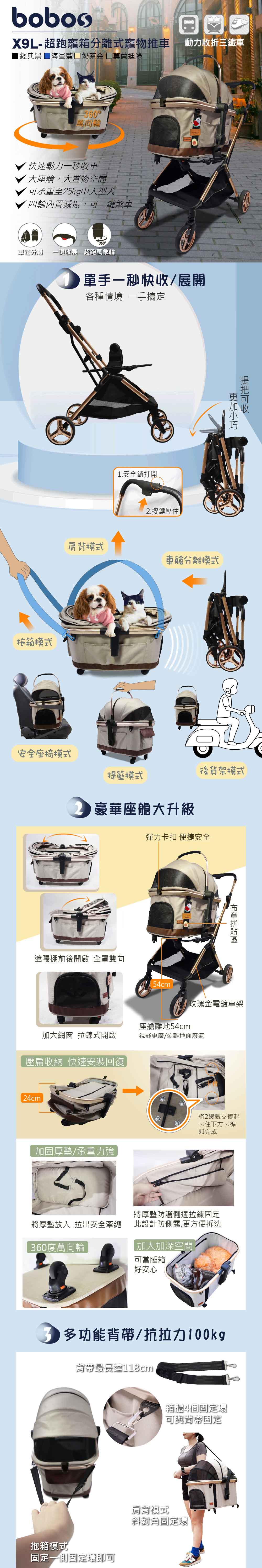 X7動力瞬收寵物推車 一秒收展 解放雙手