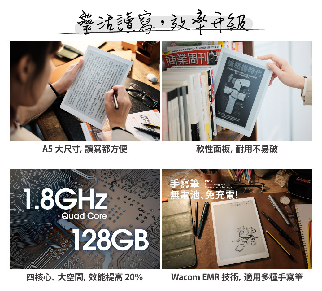 博客來【BooksPad】7.8吋彩色電子書閱讀器三件優惠組(白色主機+黑筆+殼)