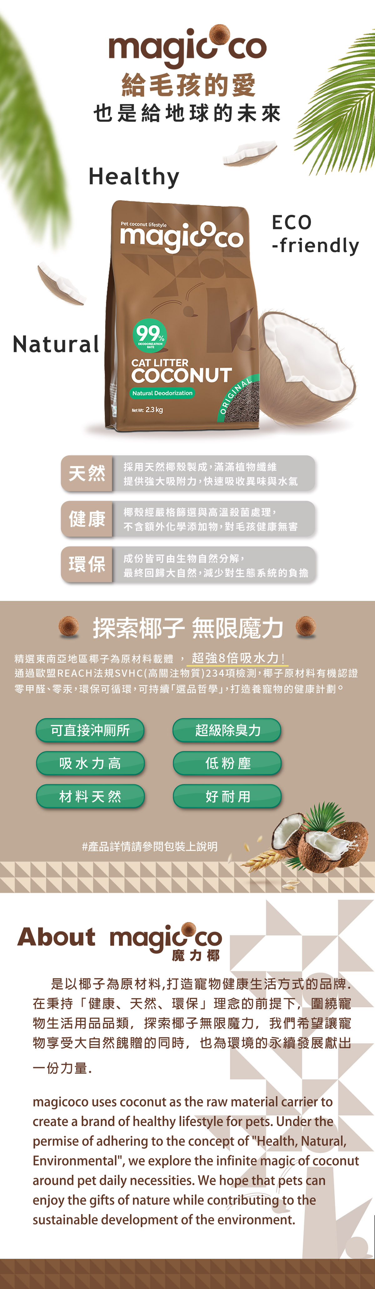 【魔力椰 Magicoco】天然椰子貓砂 2.3kg 買五