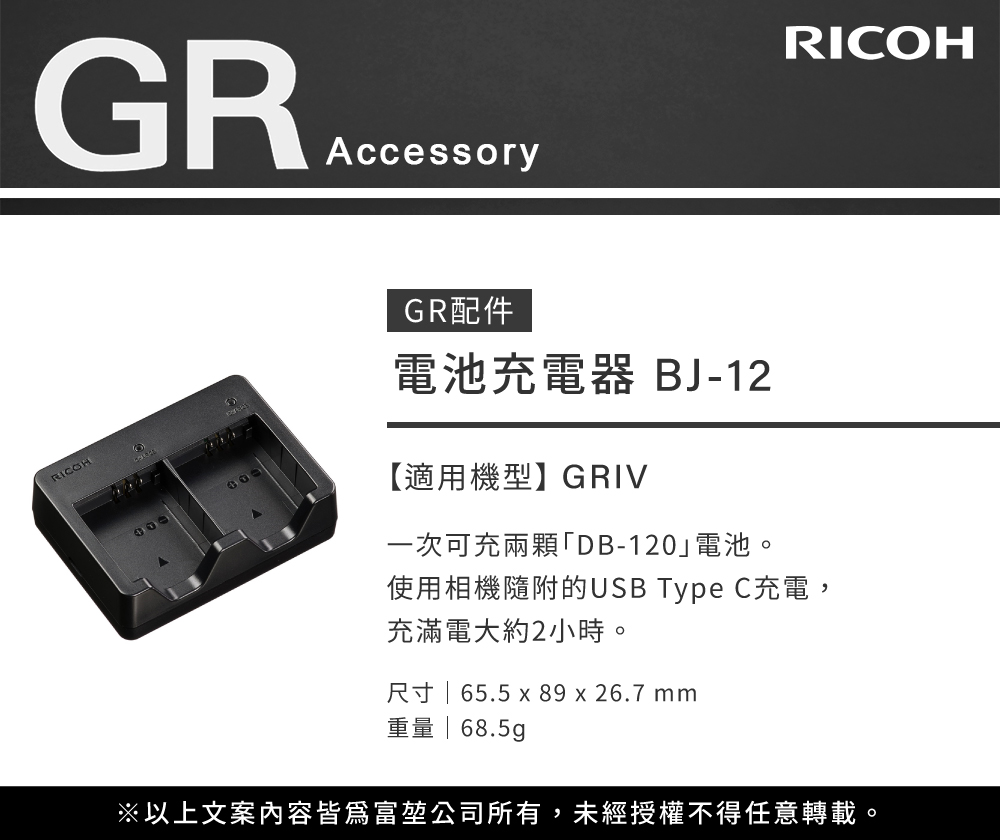 RICOH 原廠充電座 BJ-12 FOR DB-120 (公司貨)