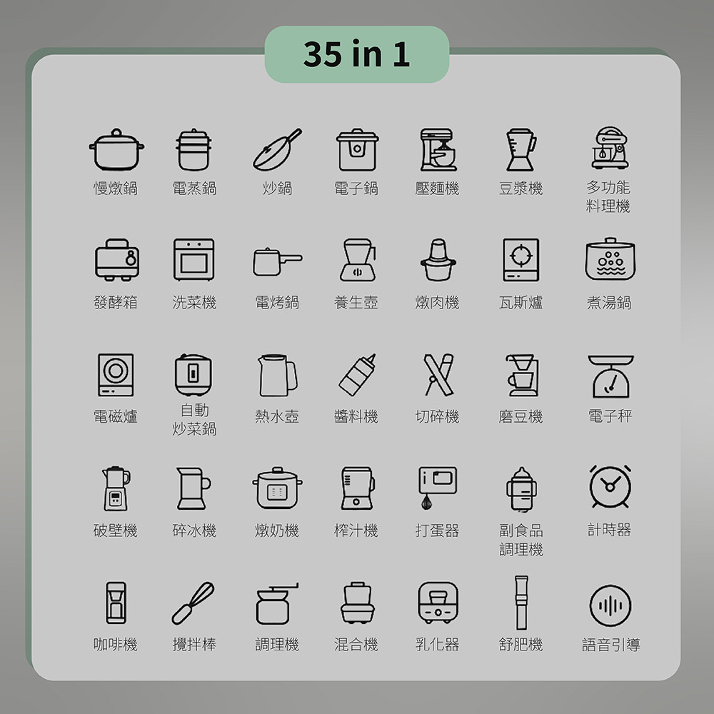 👍1機35用旗艦版,取代多種鍋具,不佔廚房空間