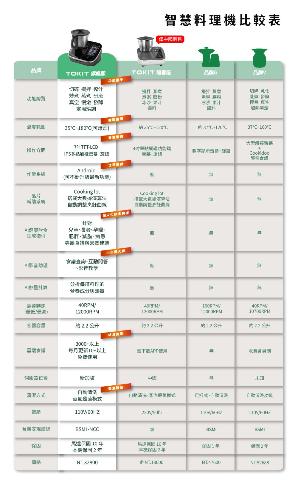 A:中國版TOKIT料理機為陽春版Lite,外型雖然一樣,但硬體規格不同、無內建作業系統、