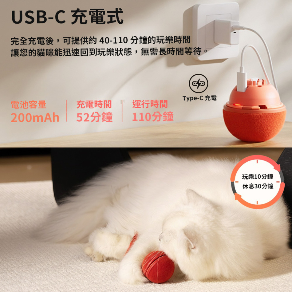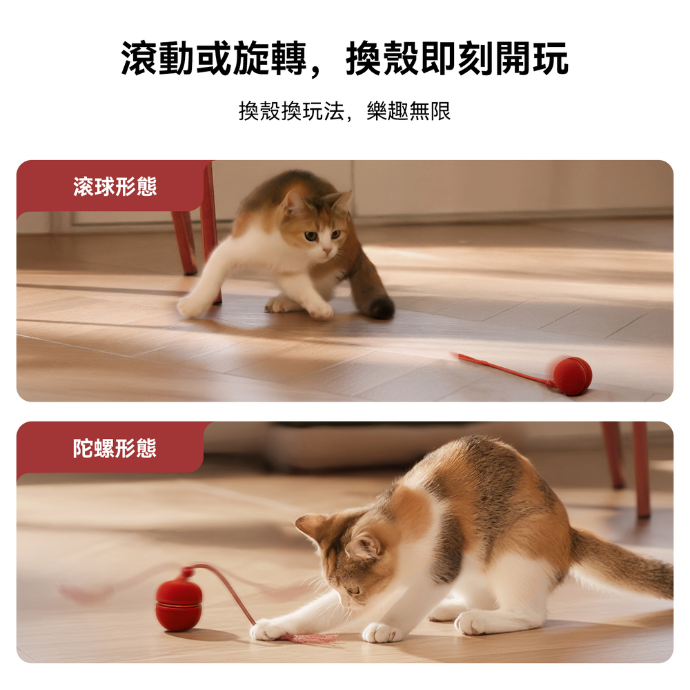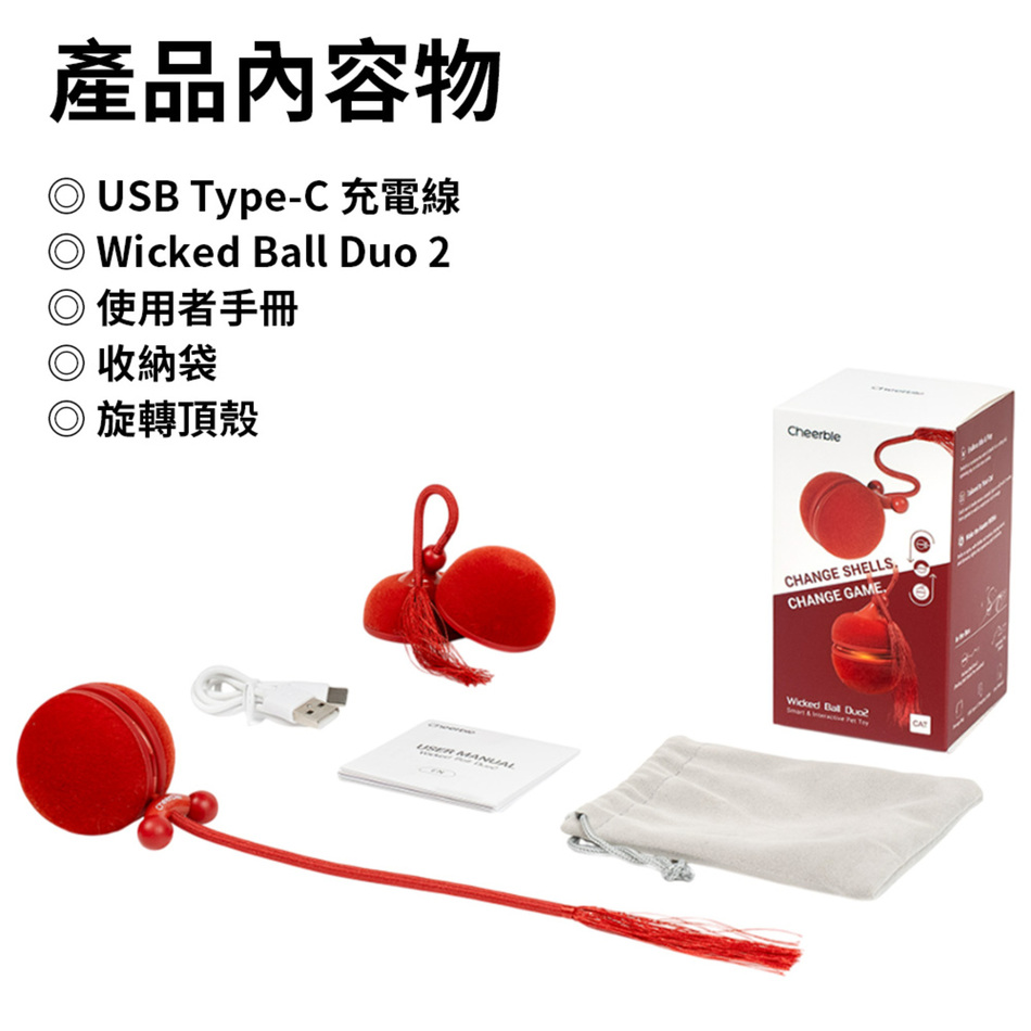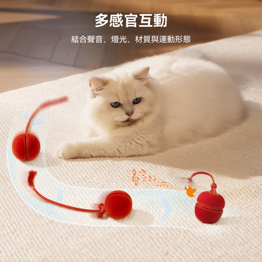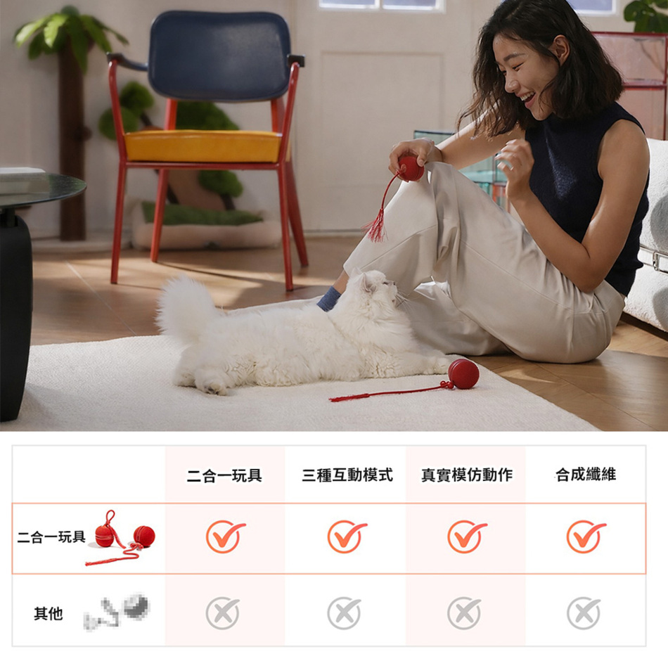七布二合一瘋狂逗貓球Duo2寵物電動球-紅