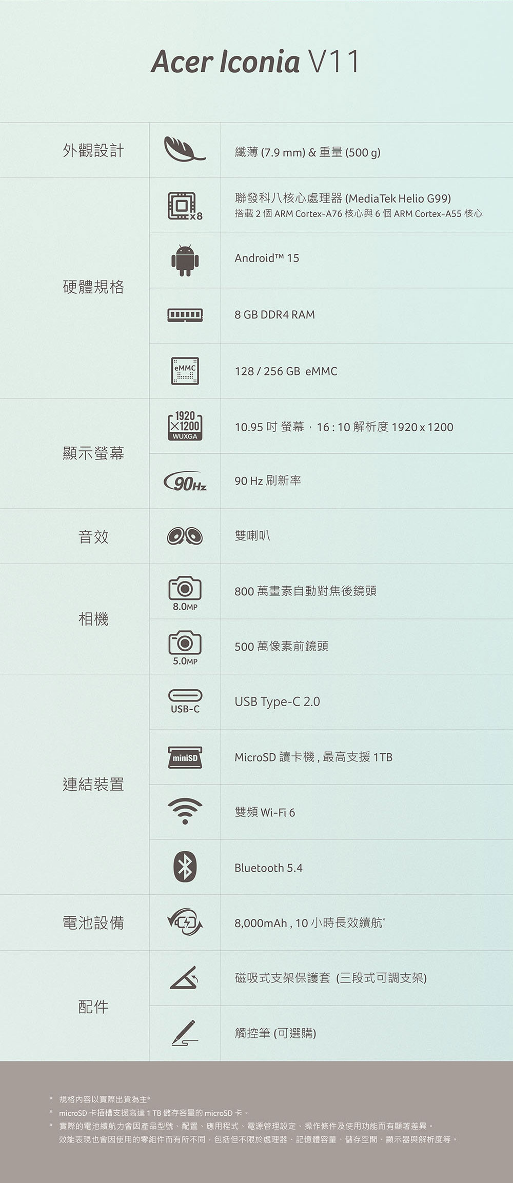 Acer Iconia|V11-22M LTE 11吋平板電腦 (4G/128G)