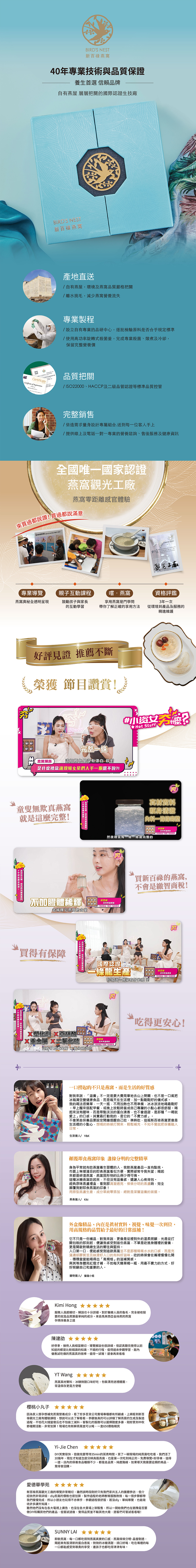 ● 嚴選市面上稀少的馬來西亞輕毛燕盞精華,盞盞通透純淨、完整