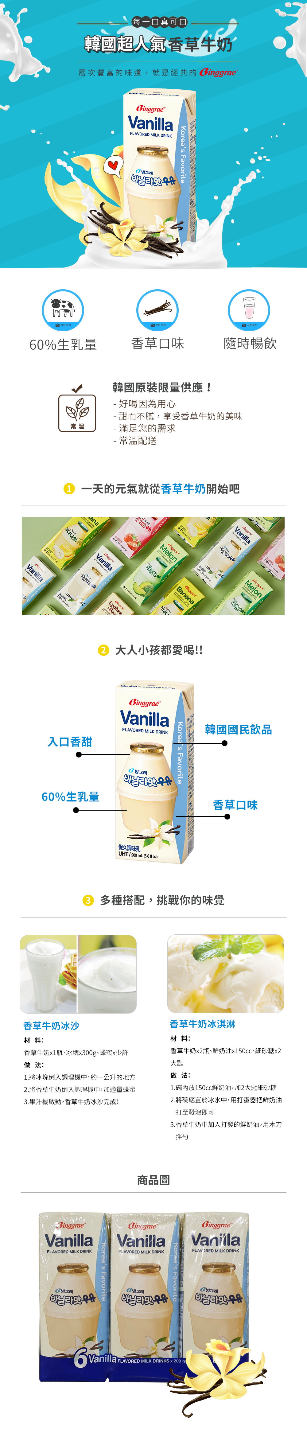 韓味不二-Binggrae香草牛奶200ml*24入/箱
