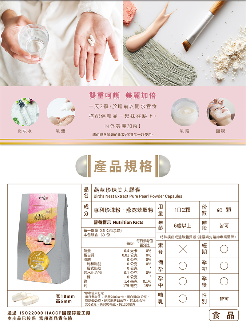 一天2顆,於睡前以開水吞食。可搭配保養品一起抹在臉上,內外美麗加乘!