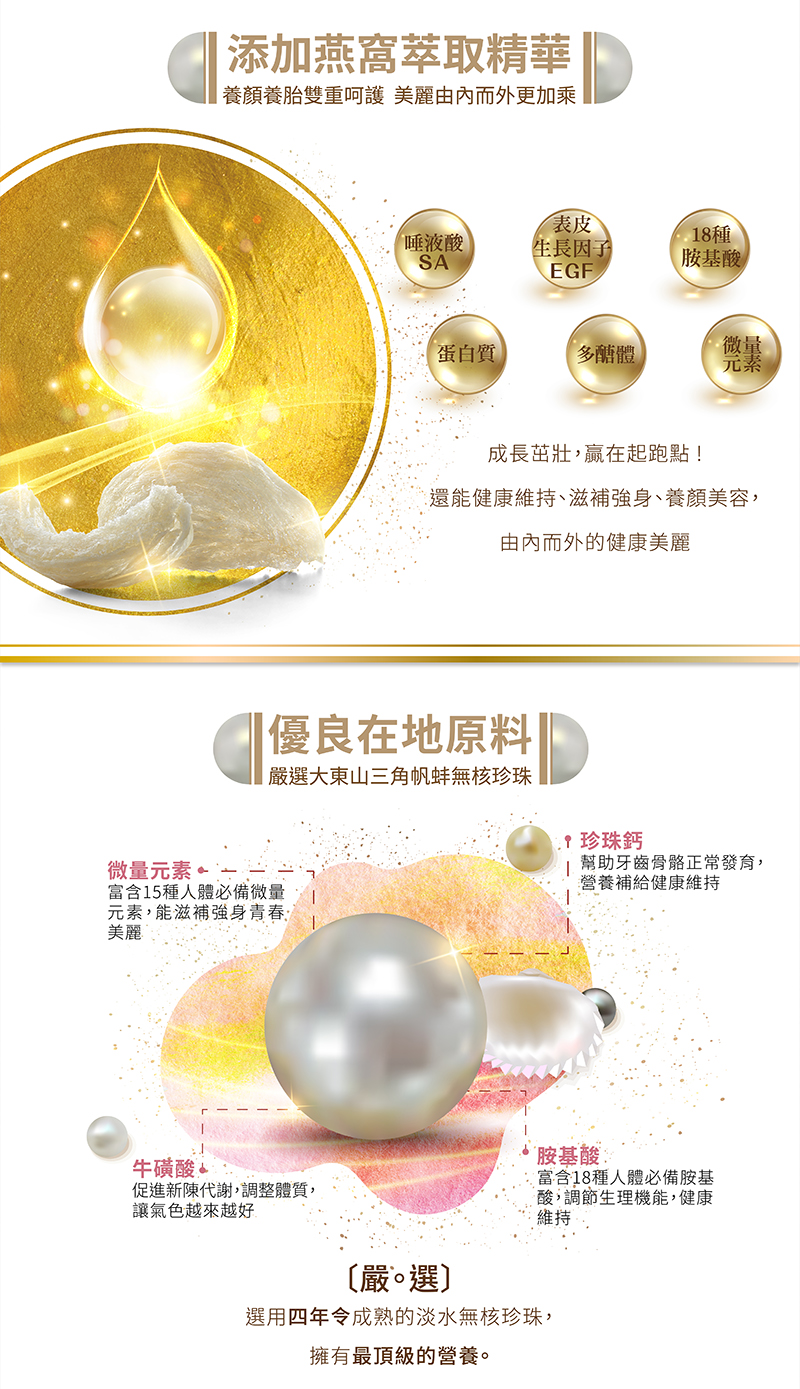 ● 產前及孕期滋補、養顏美容、成長發育補鈣、幫助入睡、熟齡保養
