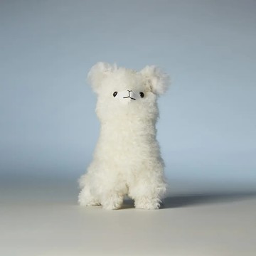 秘魯工匠手工天然羊駝捲毛娃娃22CM-原色白