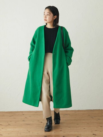 Green Parks 麂皮觸感可拆毛領抽繩長版大衣