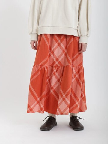 Samansa Mos2 格紋/素面棉麻混紡喇叭剪裁長裙