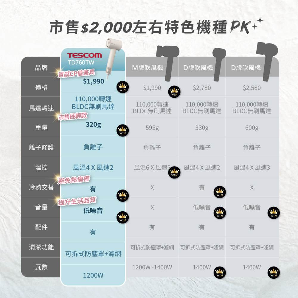 (免運) TESCOM TD760A 負離子 吹風機 大風量 輕量 速乾 低噪音 抑靜電 日本代購