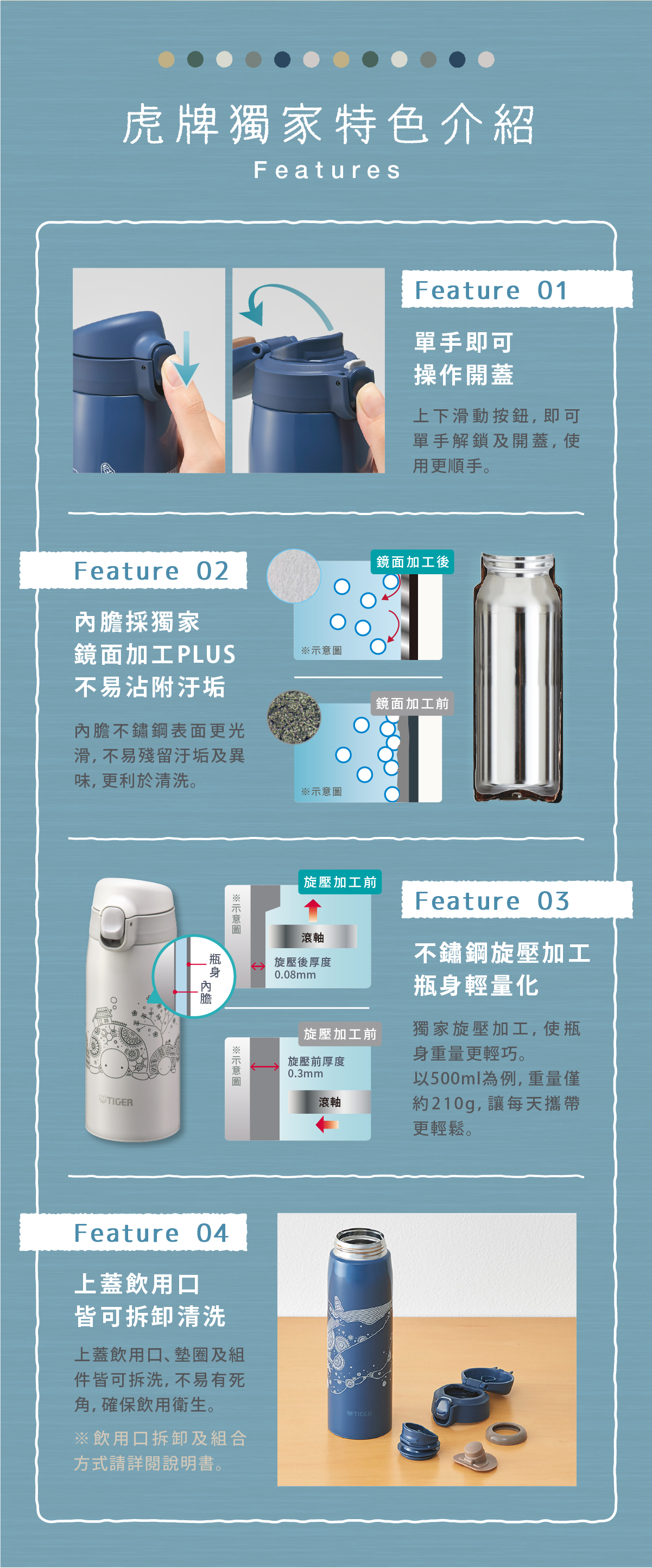TIGER虎牌 (買1送1) 超輕量手提隨行旋蓋不鏽鋼保溫杯480ml(MEA-B048+MEA-A048)