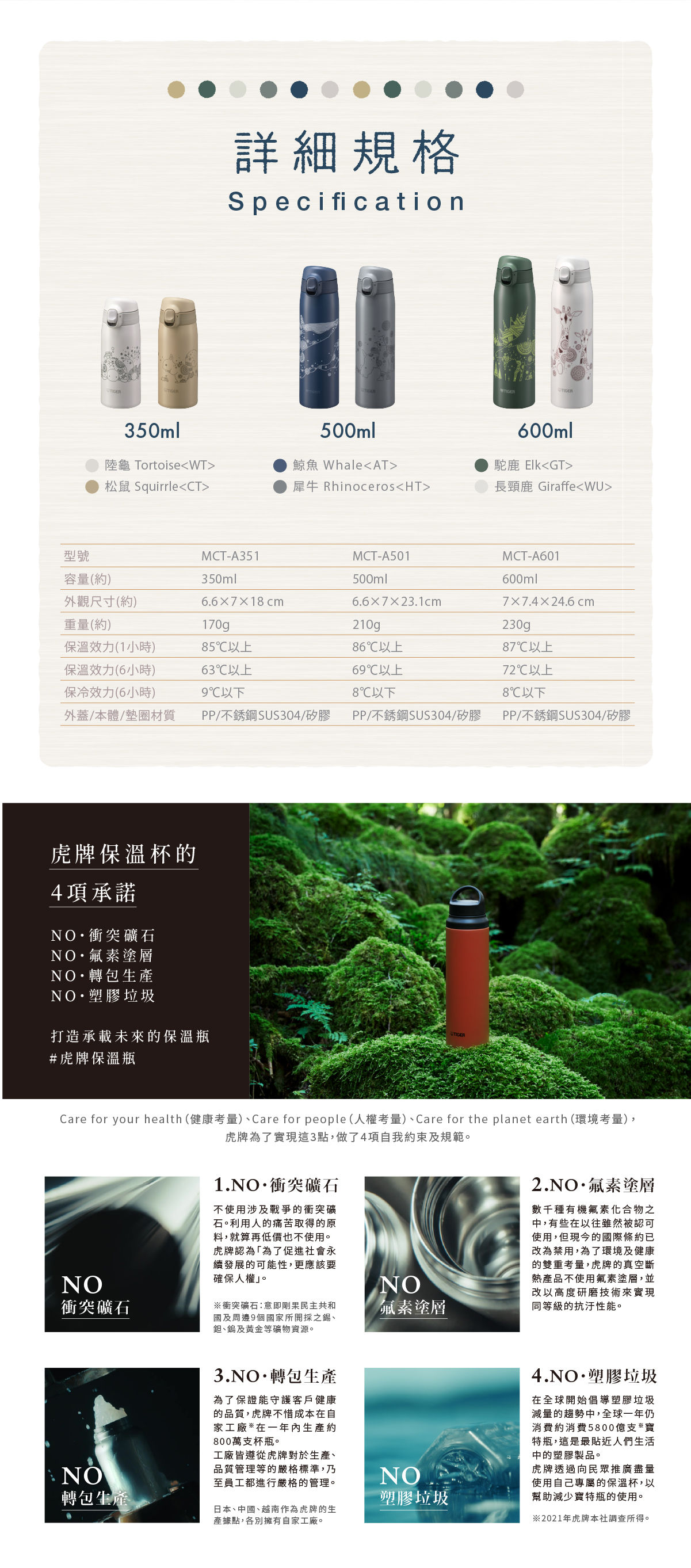 TIGER 虎牌 彈蓋型保溫杯 龜一堂聯名款 MCT-A601WU 600ml 長頸鹿 1個