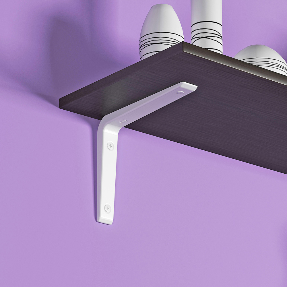 這款【加強型板托5"X6"白色二入】,在合適的牆上釘上懸背型擱板托,放上適中的層板,發揮您的巧思,將各式各樣不同大小的物品,分門別類或是收藏起來,或是為美化起居而擺設,開始動手吧!