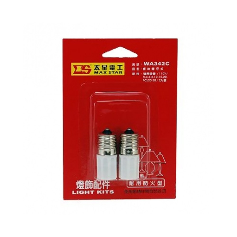 轉牙式的燈管啟動器,安裝容易迅速,適用110V/FL4.6.8.10.15.20.FCL20.30等電壓,適用轉牙式啟動器座,不會產生電磁干擾,不會影響其他電器設備,可有效減緩燈管黑話老化,延長壽命,耐熱且防火設計,適用原啟動器座,亦適用多管多迴路燈具。