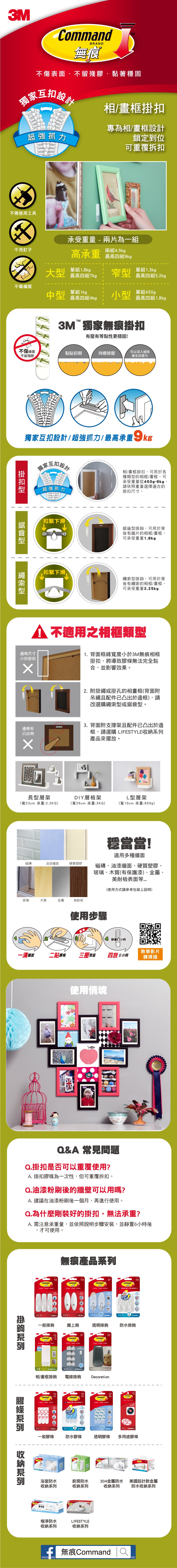 3M無痕掛鉤相框繩索型/17041/承重2.2kg