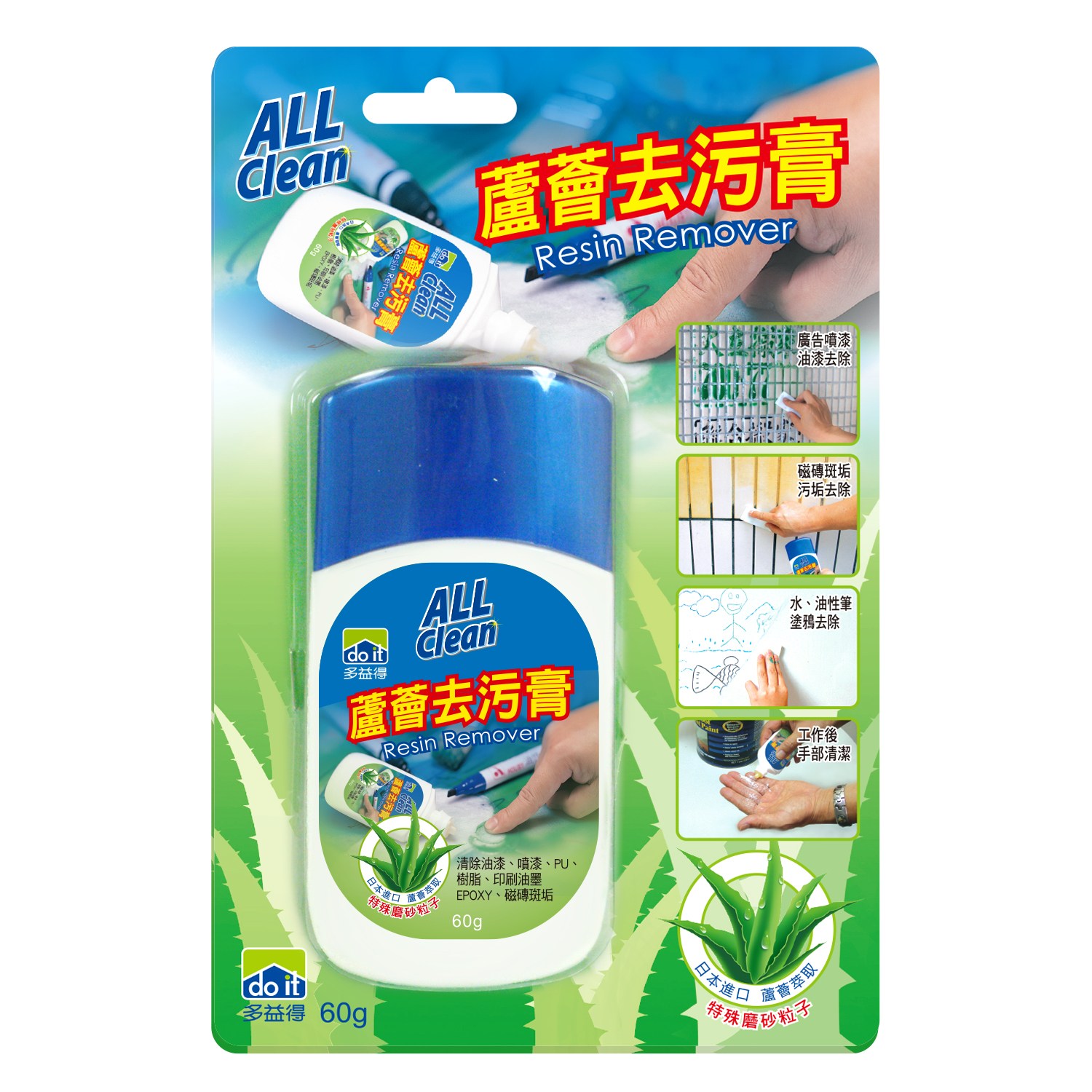 針對化學樹脂污垢,來自日本神奇蘆薈膏清潔劑可迅速有效清潔、安全環保的植物性配方,讓您成為居家清潔高手。