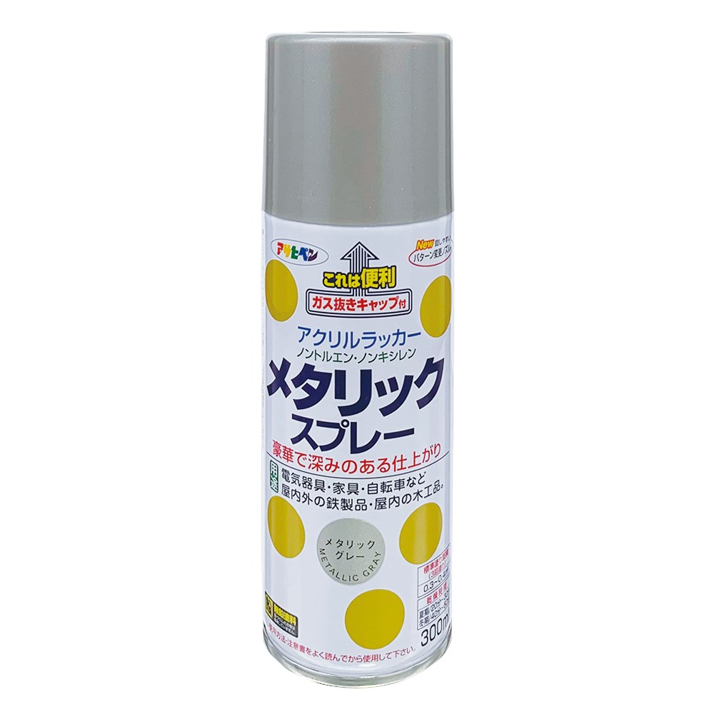 還有什麼色彩能比得上金屬光澤的華麗耀眼?【Asahi豪華金屬效果噴漆灰300ml】針對物品施以噴塗,能產生金屬表面的效果,具有深度光澤的浮現,金粉的豪華感。可噴塗於各種電器製品、墊料品、腳踏車、機車、家具、木製工藝品及飾品,室內及室外鐵製品等。這裡有豐富色系任你挑選,讓你輕易表現專屬個人特色,色澤搭配全憑自己作主,就來盡情挑選自己要的華麗風格吧!