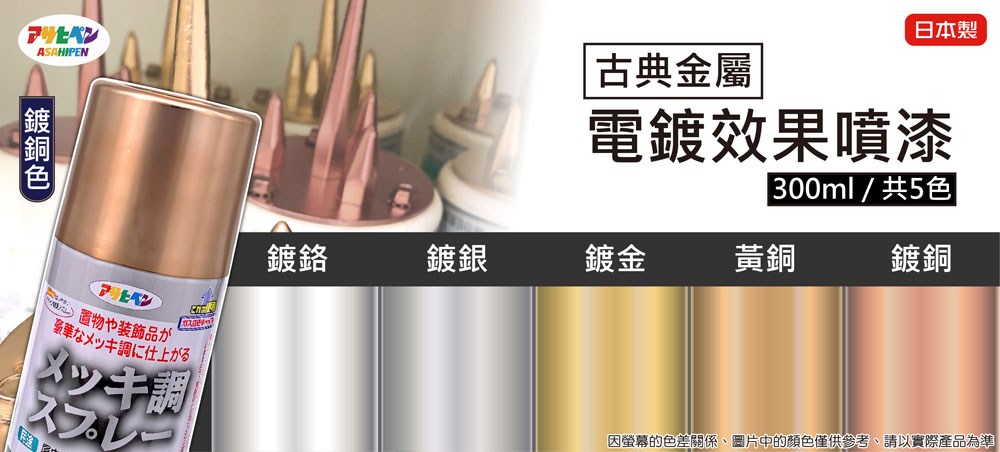 之處。並勿近火源。●罐底裝有可燃性高壓瓦斯,需避免火氣及引燃。有機溶劑應提防中毒之可能,需依指示小心使用。本產品使用高環保LPG瓦斯,不會破壞臭氧層。●本產品除有標示之用途以外不能作為他用。●使用中或乾燥中必須注意換氣及通風。要戴口罩及手套,漆料盡量勿接觸到皮膚。●在天氣良好、溼度低、物品完全乾燥時使用。●罐蓋上顏色有可能會和實際顏色有些許差異。(顏色需參考瓶身之色標)噴塗面積、乾燥時間及噴塗次數會因物品材質及氣候而不同。●如有剩餘漆料必須丟棄時,可先噴在舊報紙上,噴完並乾燥後即可視為一般廢棄物丟掉。罐內瓦斯也需空噴至完全噴完為止。