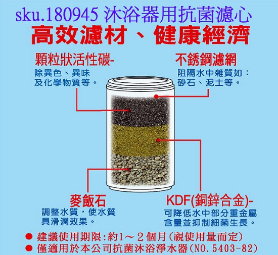 這款【沐浴器專用濾心】,為 第二代抗菌沐浴器 專用濾心。採用顆粒狀活性碳,能消除異味及化學物質;不鏽鋼濾網,能為您阻隔水中雜質;KDF能降低水中部份重金屬含量,同時抑制細菌生長,而麥飯石則能調整水質,讓水質更具滑潤效果。讓您的沐浴水質更優質,建議您1-2個月更換一次濾心,讓您越洗越美唷!