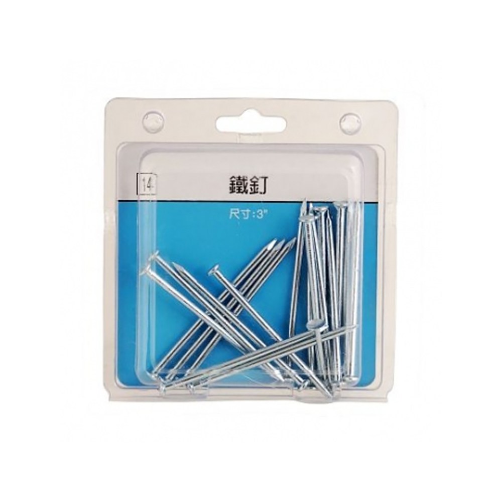 居家DIY的好幫手鐵釘使用範圍廣泛,是很多傢俱、裝潢、等固定都要用到它,是最穩定可靠的固定零件之一。這盒【14 鐵釘盒裝 3"】本體以鐵材質製造,堅固耐用、長久敲擊使用不易變形,平口的底部,方便敲打,另有多種係列尺寸可供選購。