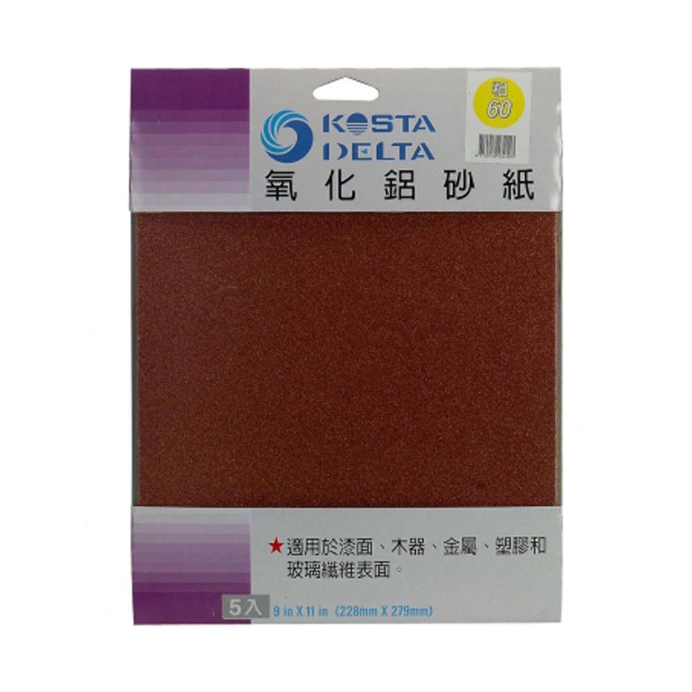 此款【粗氧化鋁砂紙9X11 5入#60】可用於金屬和木材,快速移除雜質、硬木地板初步打磨,用於一般的合金研磨,純度高,.抗拉強度大的工具材料,研磨時請配戴安全防護眼鏡和口罩。