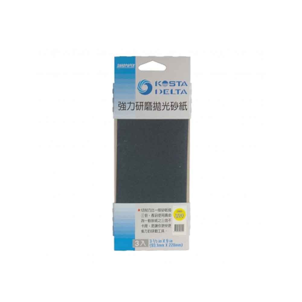 此款【強力研磨砂紙3入#320】#320細顆粒,可做表面拋光研磨,其切削力比一般砂紙強三倍,產品使用壽命為一般砂紙之三倍,不卡屑之特質,讓您更快更省理的研磨工具。