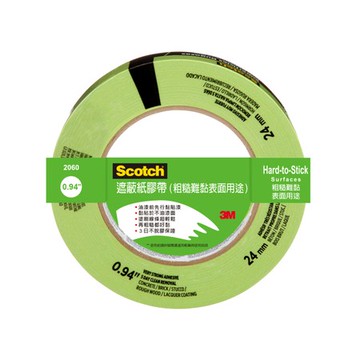 這款【3M 2060 遮蔽紙膠帶 1"】適用於一般膠帶難以黏著的表面 水性、油性漆均可使用,塗刷油漆時線條不毛邊,室內外均可適用,產品實際寬24mm,展開長55M,經濟又實惠。