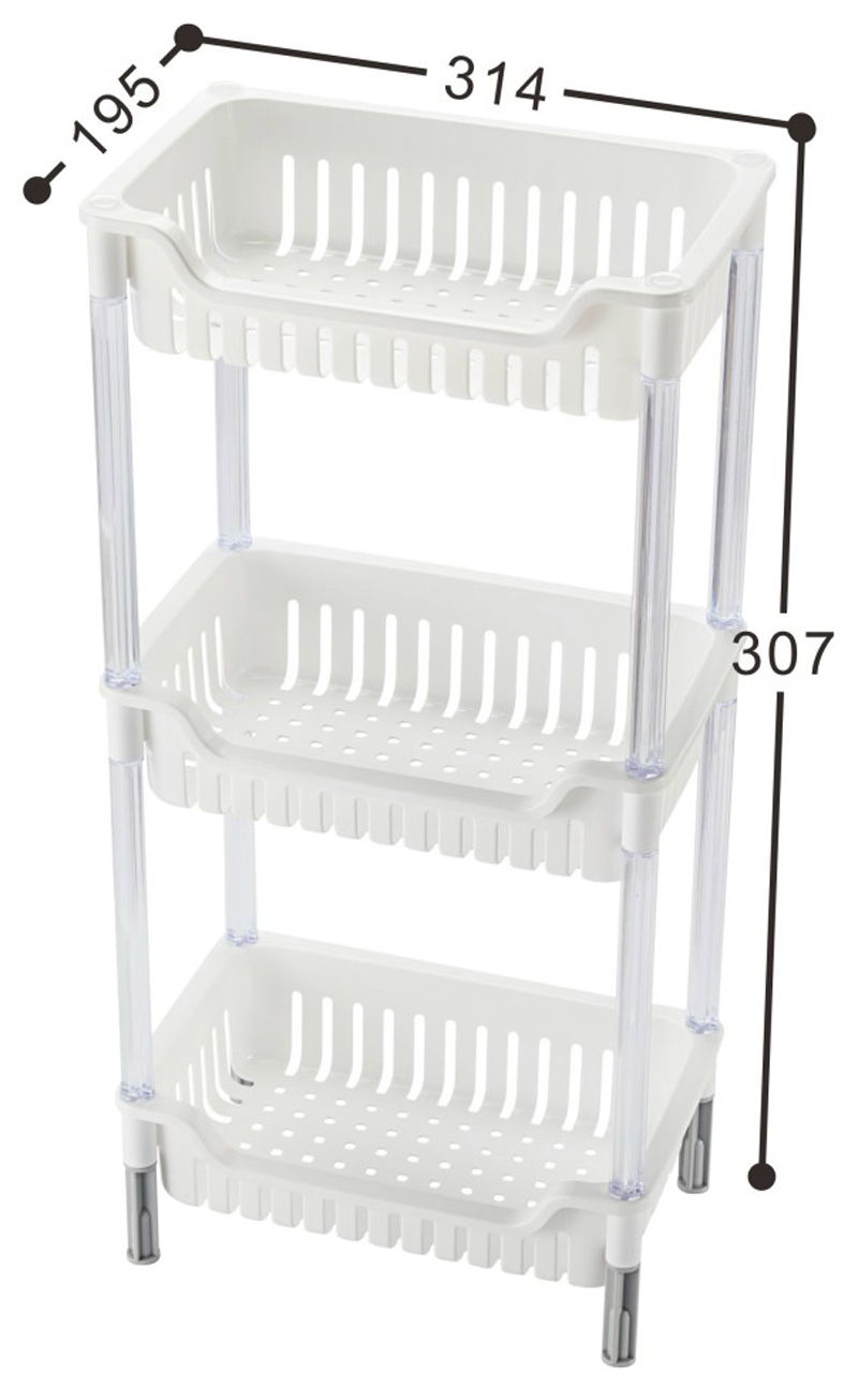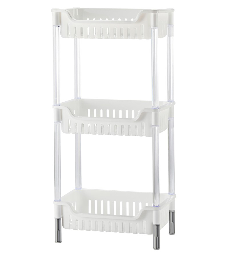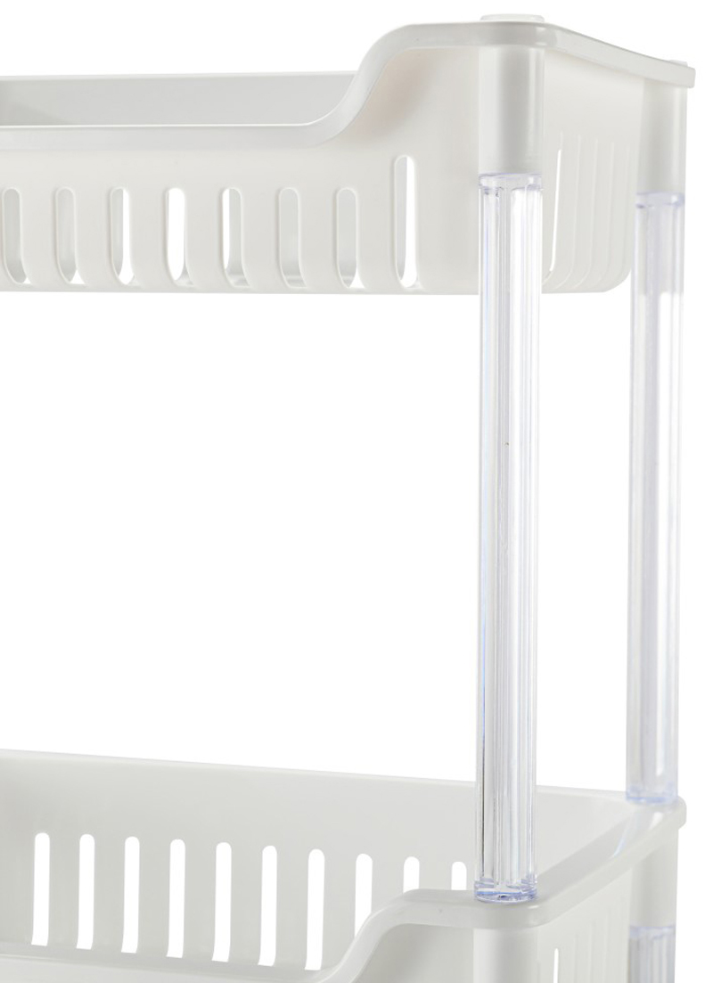 創新水晶支柱,堅固耐用;同時三層設計,方便您分類收納,可做為廚房或浴室做小物收納之用,還可兩組合併增加收納空間,讓您有個耳目一新的潔淨空間。