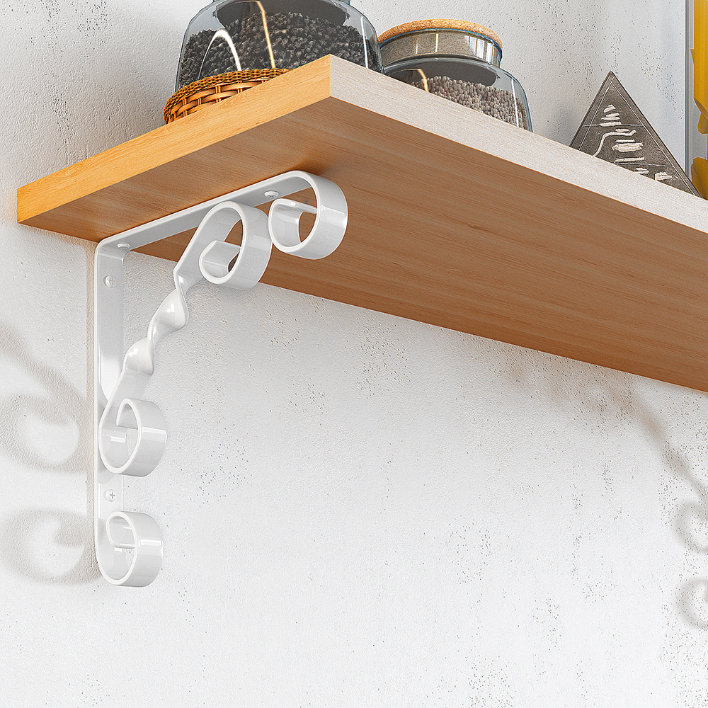 托架除了托架功能外,也可以是室內的裝飾品唷!這款【渦卷型板托】,簡單的渦卷造型,展現簡約美感, 搭配層板使用,不只層板上可以擺上裝飾品,托架本身就是一種裝飾了!