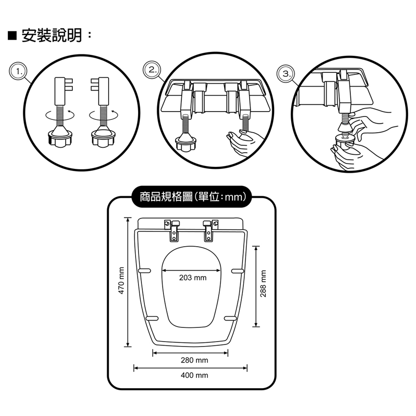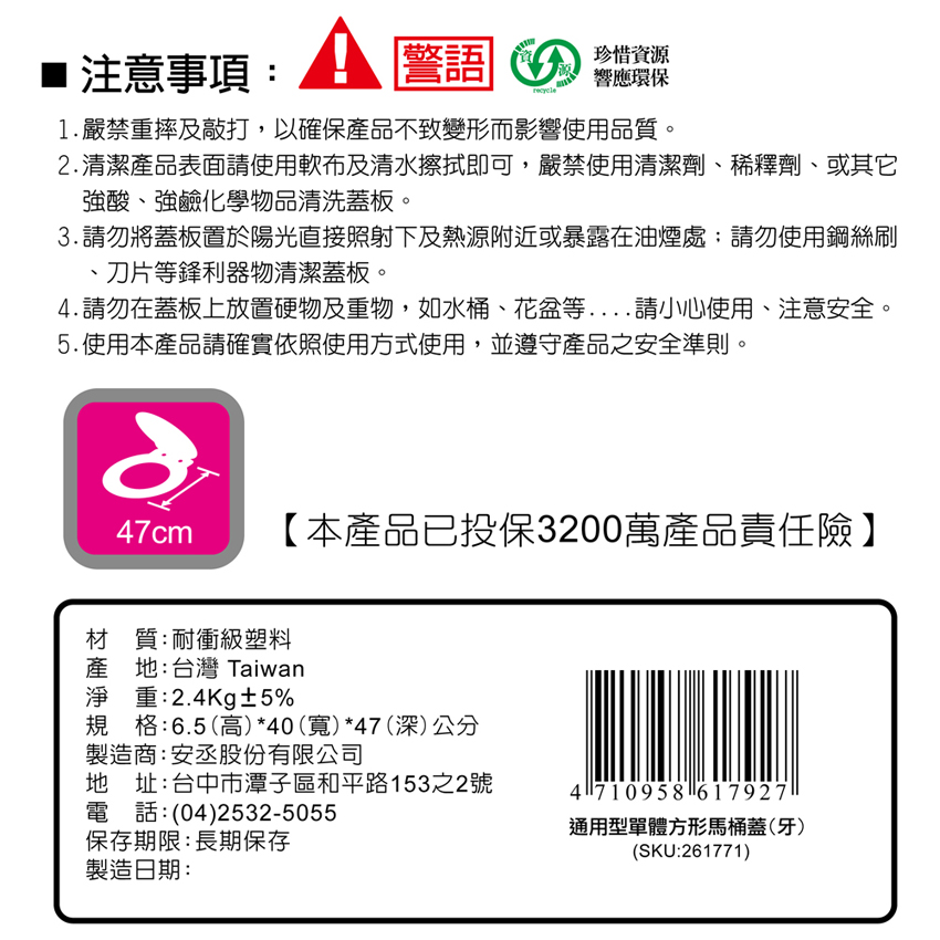 【通用型單體方形馬桶蓋】採用高塑料製作,實用美觀大方 。適用一般通用型單體馬桶。配件完整。(安裝零件包) 附完整組裝說明,輕鬆享受DIY的樂趣。