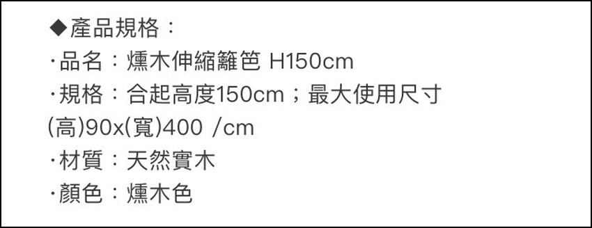 都市水泥叢林中,您是否嚮往田園生活的優閒?其實製作一個小型庭院其實不難,利用這組【燻木伸縮籬笆 高150cm】即可輕鬆完成,隨意擺上可愛的花草盆栽,鋪上白色小碎石,再加上個灑水器,輕鬆的擺上一把小矮凳、小躺椅,就完成一個夢想中的小庭院,實木材質,充滿自然風情,煙燻風格色調,更添樂活氣息,讓忙碌的現代生活,加入一抹悠閒綠意,用創意讓生活更愜意美好。