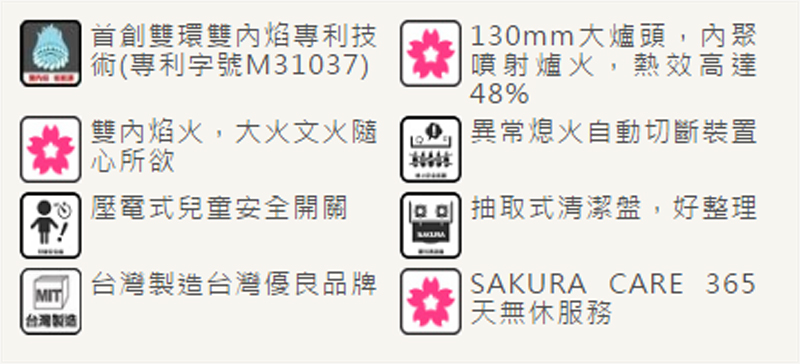 《櫻花 愛在家》首創雙環雙內焰專利技術 異常熄火自動切斷裝置 SAKURA CARE櫻花售後服務保證!!