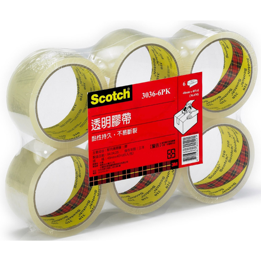 生活種總少不了貼貼補補!這款【3M Scotch 透明封箱膠帶6入】黏性持久不易斷裂,加上寬48mm,適合封箱使用!
