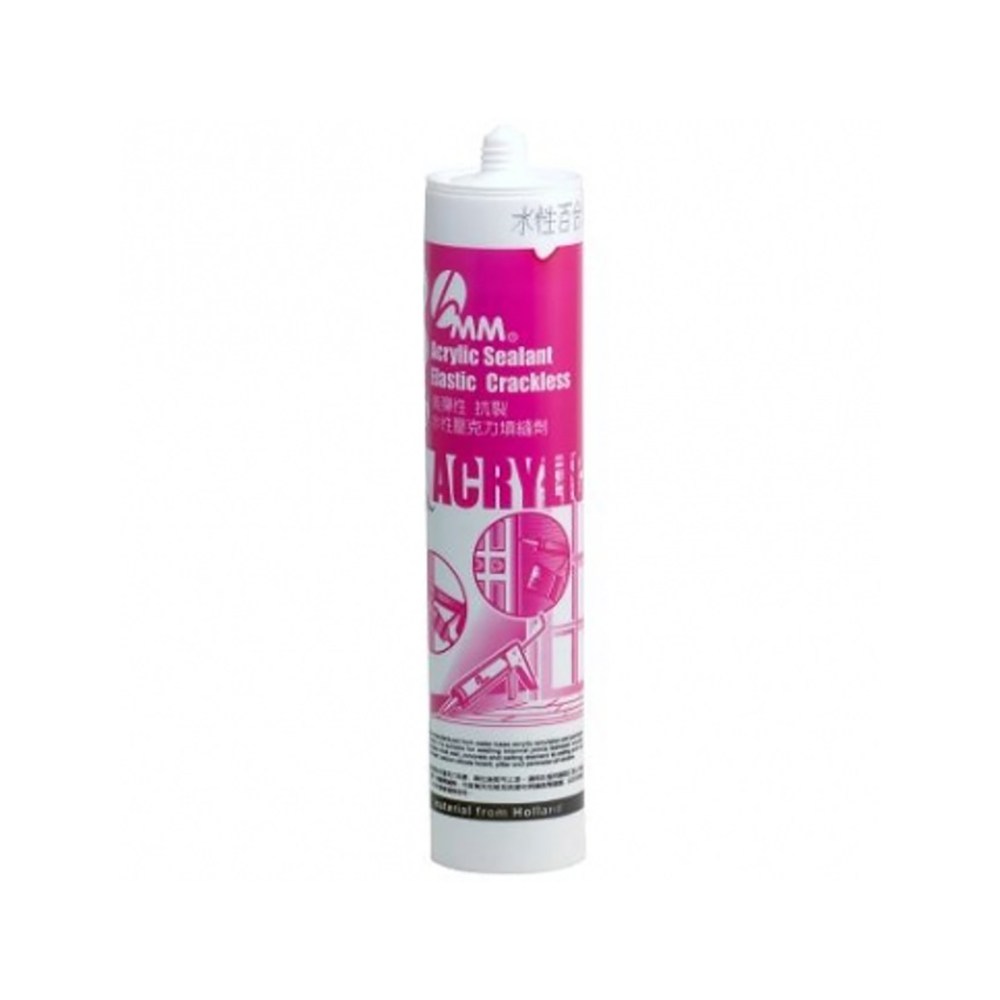 本產品主要成份是水性壓克力乳膠,固化後即可上漆,適用於室內建築工程上填補木建材和水泥牆、磚牆間縫隙,可修補天花板及其建材與牆面間接縫,以及石膏板、矽酸鈣板、柱子和窗緣縫隙使用,使用時為白色乳膠狀,經過24H風乾固定後才會呈現透明色,為了避免未固化而變形,請務必確保使用前黏著處必須為乾燥且乾淨。