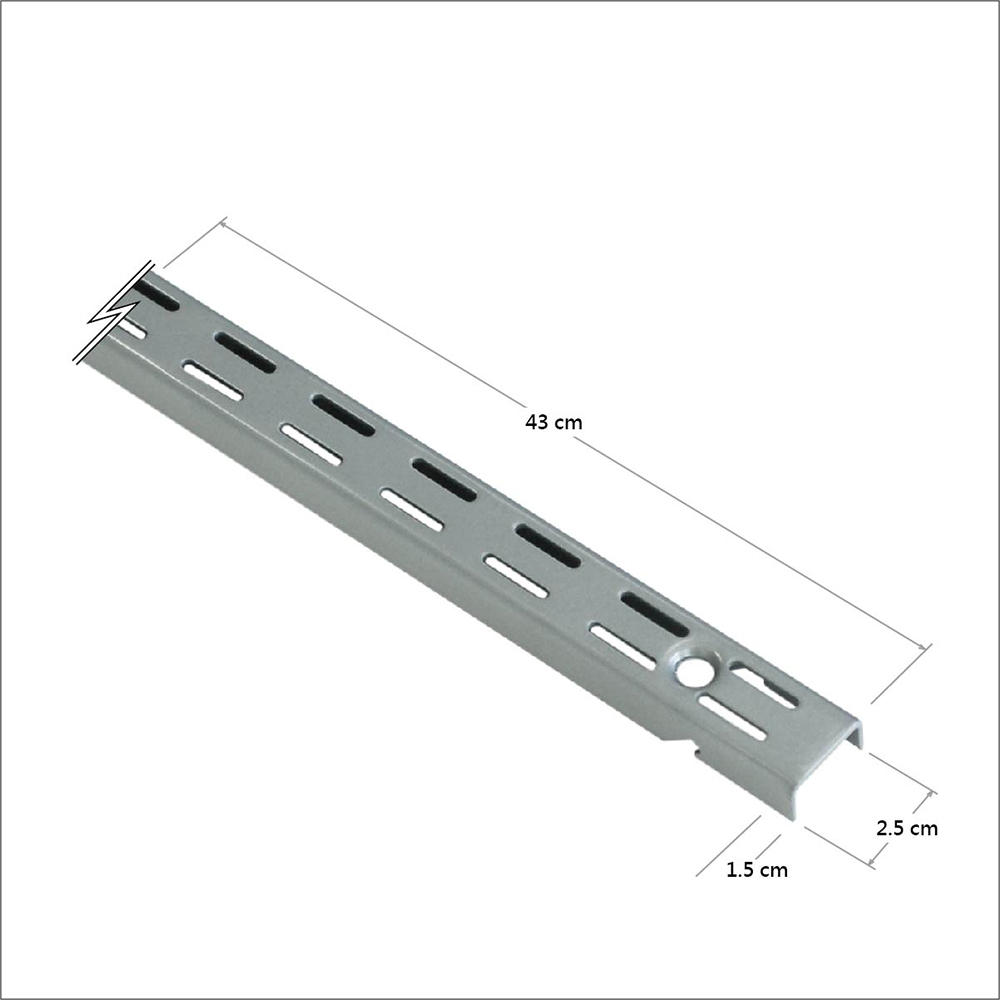 這款【雅築壁掛式直立桿 43cm 銀色】,銀色的直立鐵架,堅固耐用,拆裝方便,擴充性佳,搭配拖板及層板的使用,是您收納擺設的好幫手,與雙槽擱板托安裝使用,讓您的收納空間更靈活!