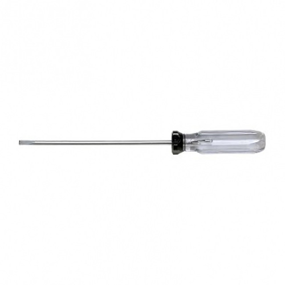ACT 透明方柄一字起子3X100mm,充滿現代感的透明握把外型,為了使作業時握力能夠得以發揮,將把手部份設計成略為方型以增加施力點,刀桿以鉻釩鋼材製成, 完全淬火和回火熱處理方式製作,非常堅固且耐用,顆粒細微,所以擁有優良的機械性,非常適合製作成必須經常使用耐磨的工具耗材,表面光滑,美觀大方,無論 是否為專業的施工作業人員,或是為居家工具所備用,都是您的好選擇!