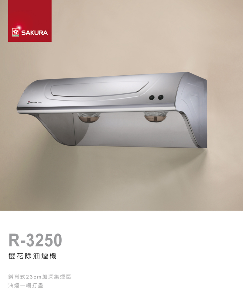 油煙機最麻煩的就是清潔問題,本款【櫻花 斜背式除油煙機 雙渦輪 W90CM R-3250SXL 不鏽鋼】導流前板設計,油煙瞬間排除,更有油網、熱熔解雙效除油設計!