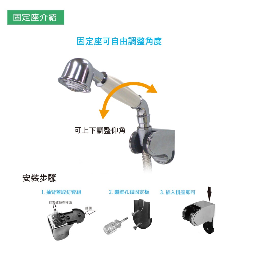 2. 請以一般溫和清潔劑清洗蓮蓬頭,切勿使用具腐蝕性之化學清潔劑如鹽酸與漂白水。