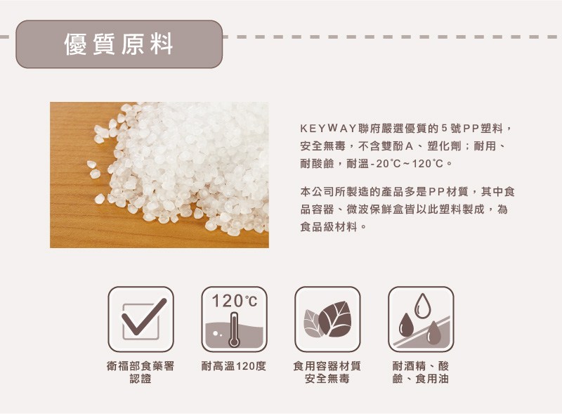 聯府塑膠股份有限公司創立於1990年,多年來秉持著專業研發的態度和不斷創新的精神。在嚴格遵守品質、服務、信用、專業的原則下,堅持優良MIT製造與服務熱忱之理念,打造KEYWAY家用品品牌,行銷全球五大洲40餘國。主要產品為塑膠整理箱和家庭收納用品,產品種類涵蓋塑膠桌椅、食品保鮮容器、廚房用品、衛浴用品、零件收納盒等家用產品。