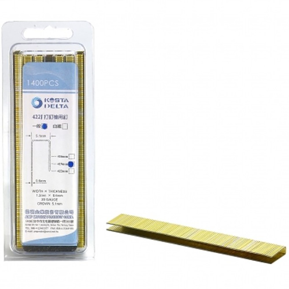 此款【419ㄇ型釘】(1400支/盒),材質堅硬,需搭配釘槍使用,一般適用於木頭間的裝潢裝釘。鐵釘使用範圍廣泛,是很多傢俱、裝潢、等固定都要用到它,是最穩定可靠的固定零件之一,本體以鐵材質製造,堅固耐用、敲擊不易變形。