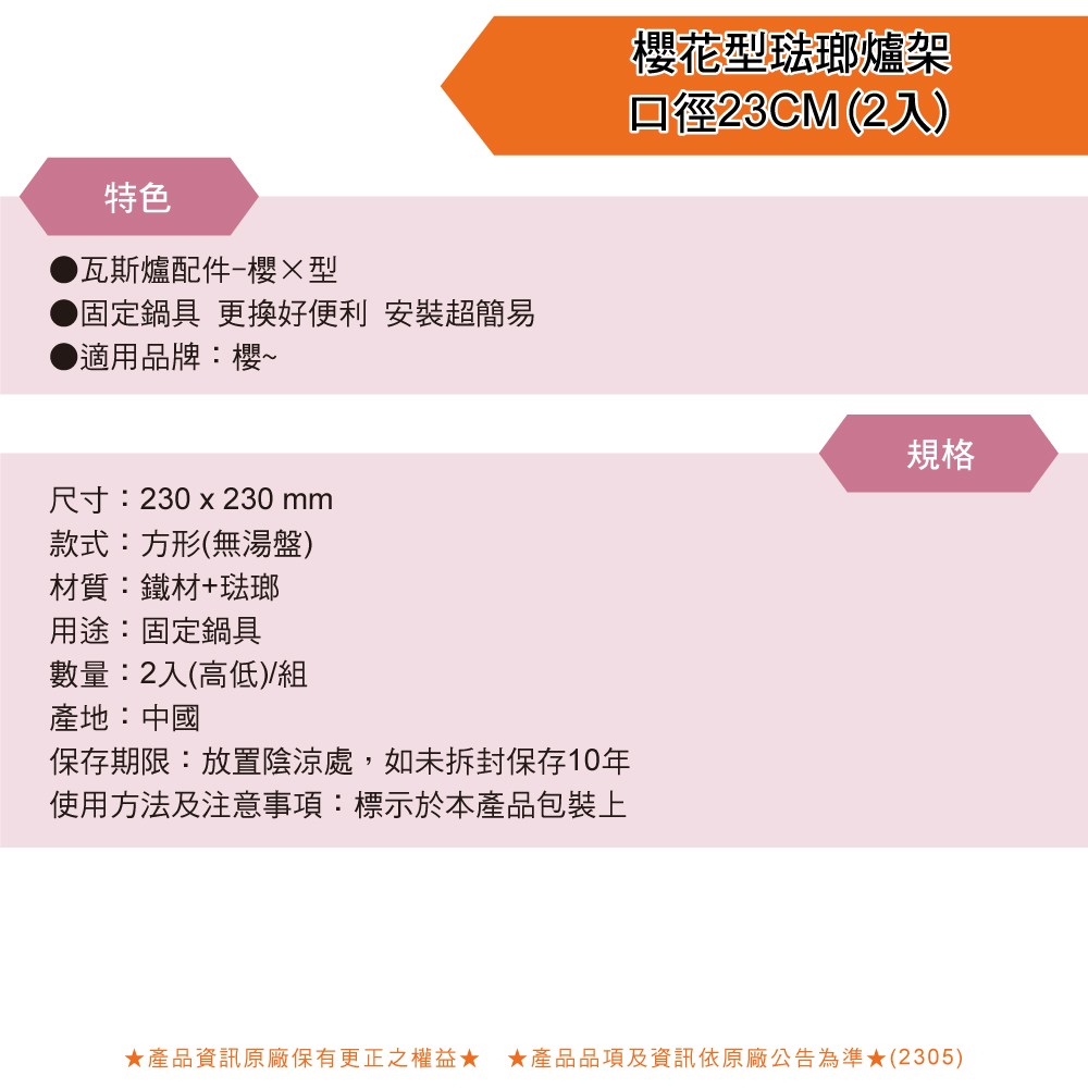照過來照過來!各位看倌啊!您的廚房是否有瓦斯爐?用的是什麼爐架呢?推薦一款瓦斯爐專業配件【櫻花型琺瑯爐架-口徑23CM(2入)】。讓你烹飪時可以省力的好幫手。內有高、低爐架各一只,讓鍋具得到適當的支撐,降低與爐頭鍋具的碰撞、減少損耗。別再猶豫,快來帶一組回去吧!