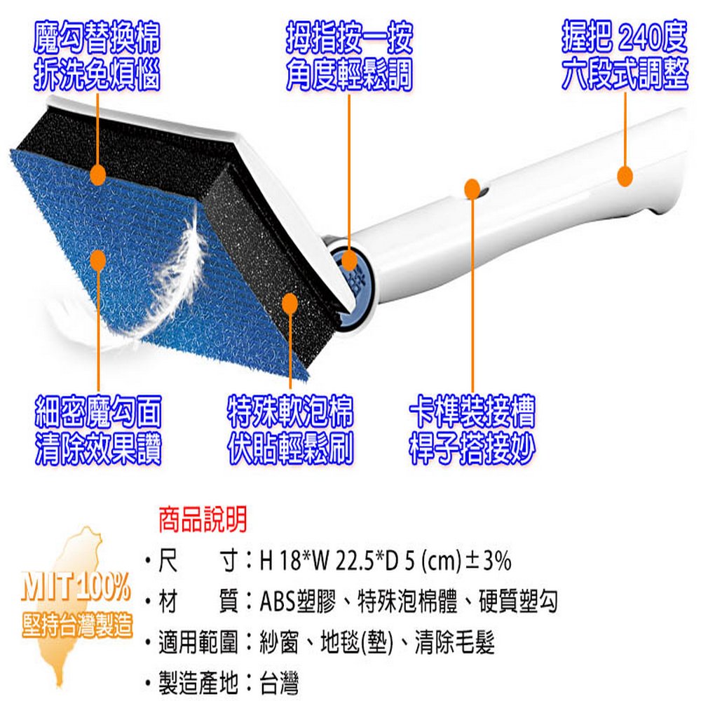 特殊勾毛可依照不同角度所使用,符合人體工學的角度設計,清掃不費力,可輕易勾除任何毛料上的棉絮及毛屑,