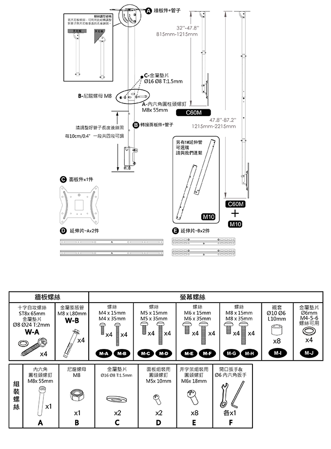 C60M 為吊頂式壁掛支架