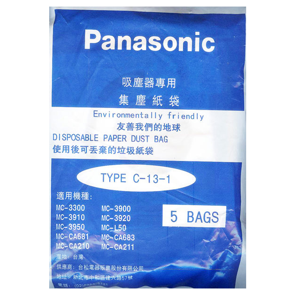 Panasonic 國際牌 吸塵器專用集塵紙袋 5入 TYPE-C-13