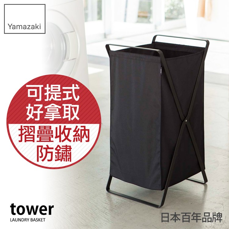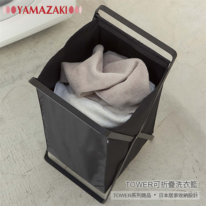 日本【YAMAZAKI】tower可折疊洗衣籃(黑)