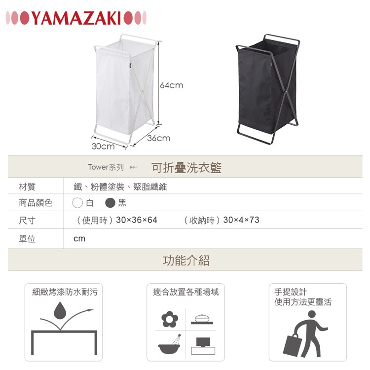 日本【YAMAZAKI】tower可折疊洗衣籃(白)
