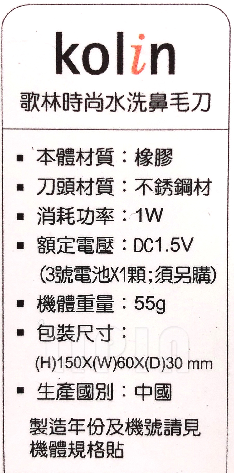 Kolin 歌林 時尚水洗鼻毛刀 KBH-R01~預購~預計11/30到貨寄出