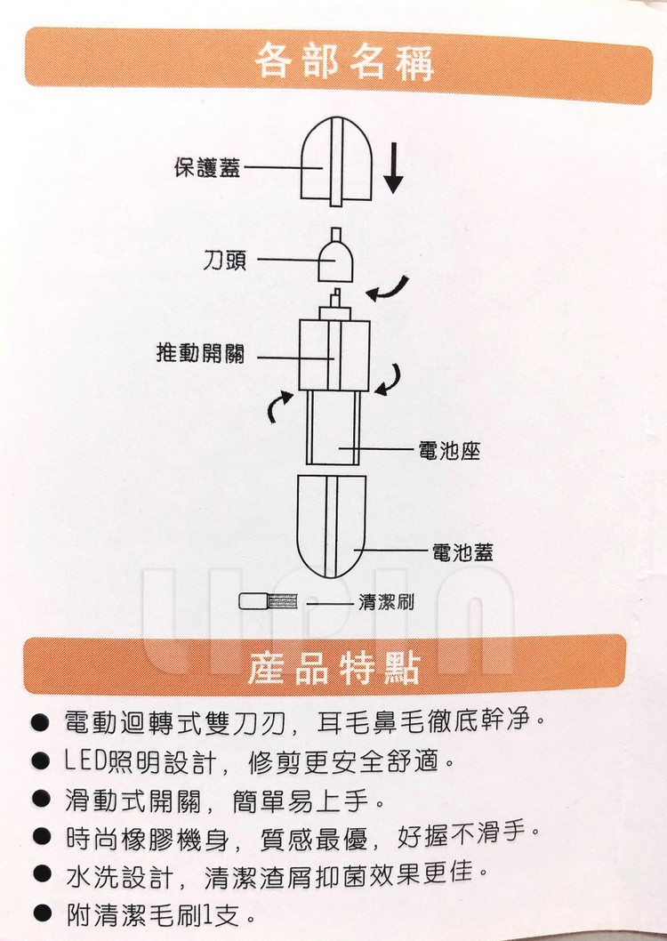 ◆電動迴轉式雙刀刃,耳毛鼻毛徹底乾淨。